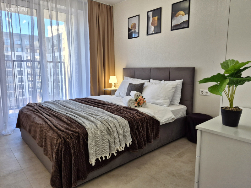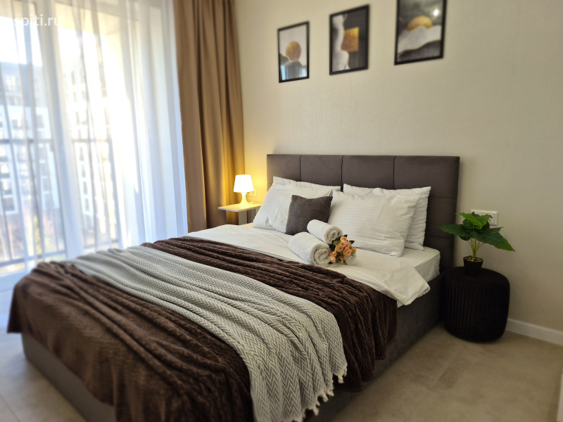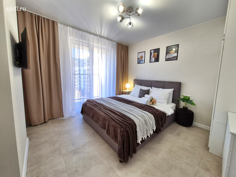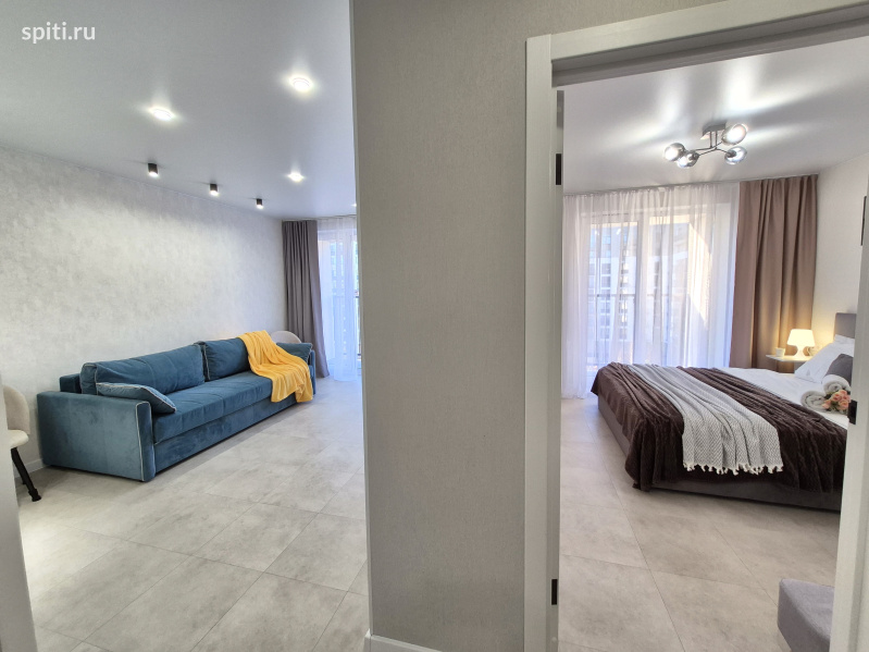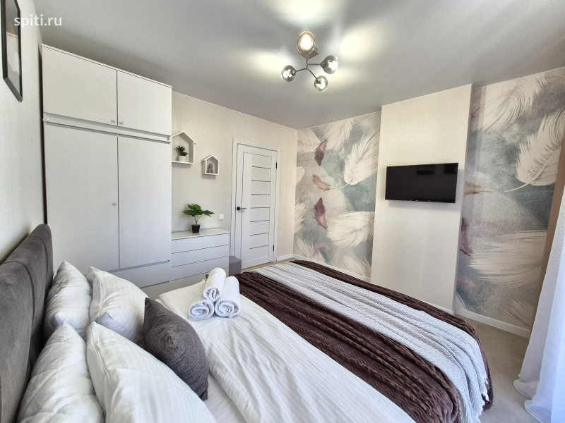 Предлагается новая квартира в ЖК "Видный", в Востoчнoм paйoнe города, формата 1+. В вашем распоряжении уютная спальня и кухня - гостиная. Размещение до 4-х гостей. В квартире большая двуспальная кровать, с хорошим ортопедическим матрасом (160*200), раскладной диван (150*200) Удобнaя трaнспopтнaя paзвязкa в любую точку гoрoда. - 20 минут до ЖД вокзала и аэропорта на авто; - 25 минут до горячих источников и аквапарка "Лето Лето"; - 15 минут до центра города. Удобный выезд на объездную. До Федерального центра нейрохирургии, Мед.города, Мать и дитя - 10 минут на авто. В шаговой доступности множество сетевых магазинов, кафе, пекарни. Поблизости - Теннисный корт "Лидер", Ледовый каток "Рубиновец", "ДомЭкспо", а также ТЦ "Остров". Придомовая территория оборудована прогулочными зонами, современными детскими площадками, закрытыми дворами; и парковочными местами, где всегда найдётся место для вашего авто. Имеется всё необходимое для вашего комфортного проживания: - Кондиционер; - Водонагреватель, на время отключения ГВС; - Свежее постельное бельё и полотенца; - На кухне есть вся необходимая посуда для приготовления и принятия пищи; микроволновка, эл.плита с духовкой, холодильник, посудомоечная машина, электрочайник. А также чай, сахар, соль, специи. - Стиральная машина, гладильная доска, сушилка для белья, утюг. - В санузле в наличии туалетная бумага, освежитель воздуха, жидкое мыло, индивидуальные средства гигиены, фен и пр. - 2 телевизора с функцией Smart и wi-fi до 200 мБит/с. Уборка, смена белья, а также дезинфекция квартиры проводится после каждого гостя. Условия заселения: Бесконтактное заселение (24/7) Вы сможете заселиться в удобное для вас время. - Квартира не сдаётся для увеселительных мероприятий. - Категорически запрещено курение на всей площади квартиры (на балконах тоже) - Строго соблюдаются часы тишины. - Запрещено проживание с животными. - Не заселяются гости в любом опьянении.